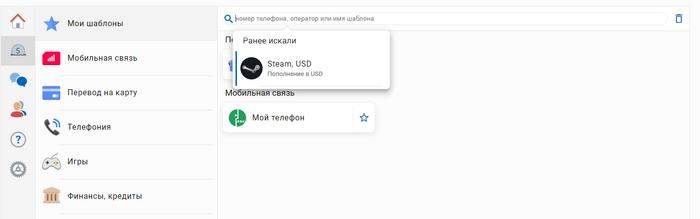 В платежах находим Steam и нажимаем на него.