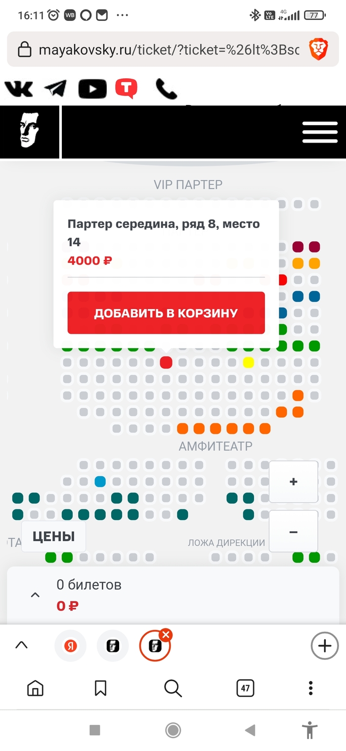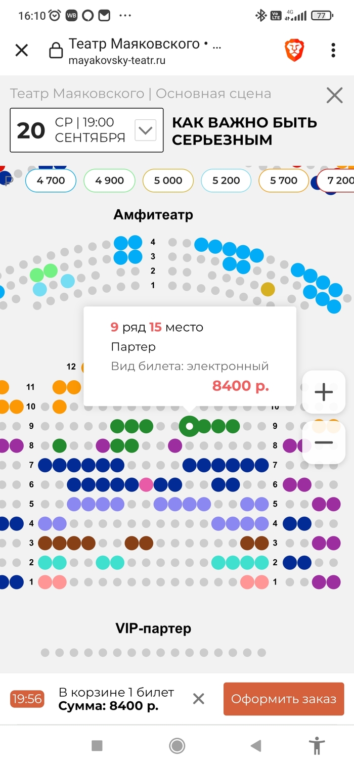 Для сравнения билеты на их сайте (https://www.mayakovsky-teatr.ru/afisha/) и почти те же места (ближе) на официальном сайте театра Маяковского (https://www.mayakovsky.ru/playbill/)