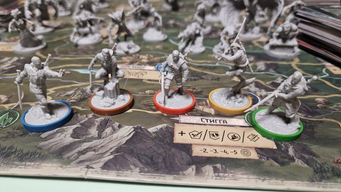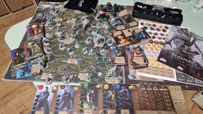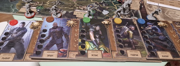 И, конечно, ведьмаки, представляющие 5 ведьмачьих школ. У каждого свой планшет для отыгрывания роста способностей ведьмака.