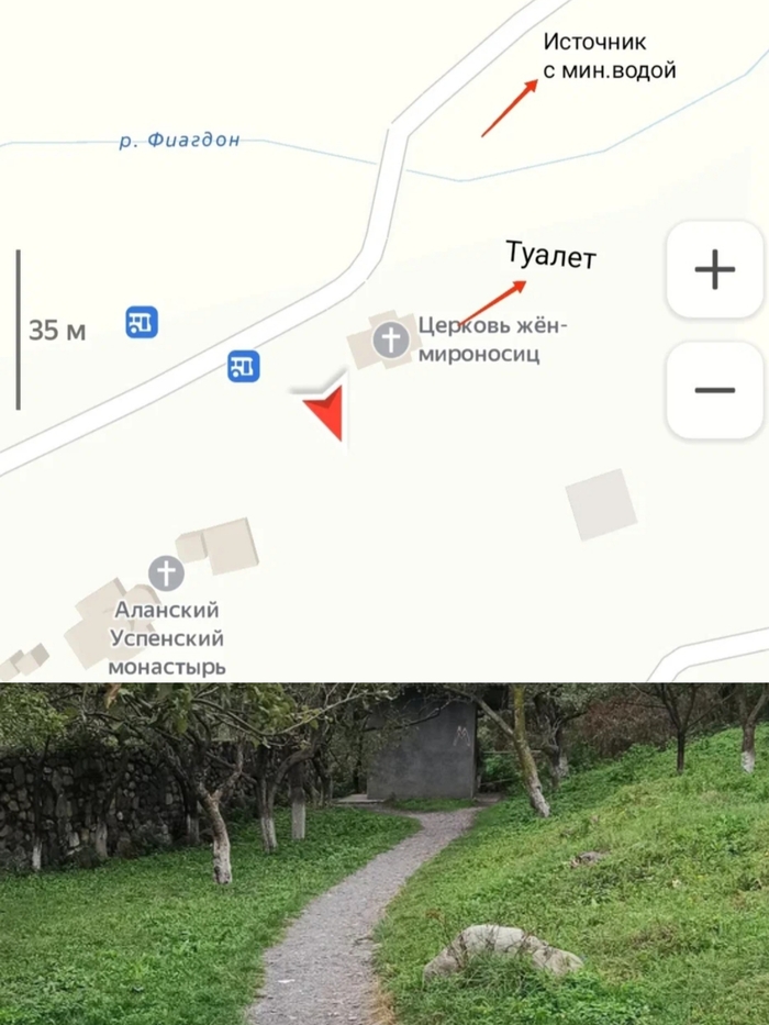 Не на всех картах отмечен источник с минеральной водой, но он там есть, прямо в 3х минутах от монастыря (на фото выше он указан). Берите с собой пустые бутылки под воду.