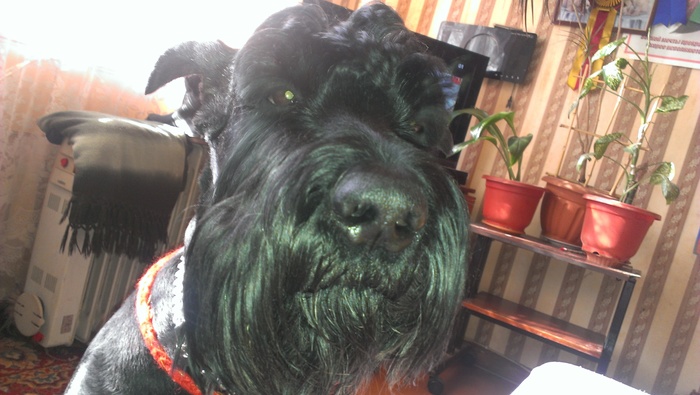 Ну демонюка. Чемпион России и интернациональный чемпион в своём классе. Огромный чёрный пёс но такой душка....