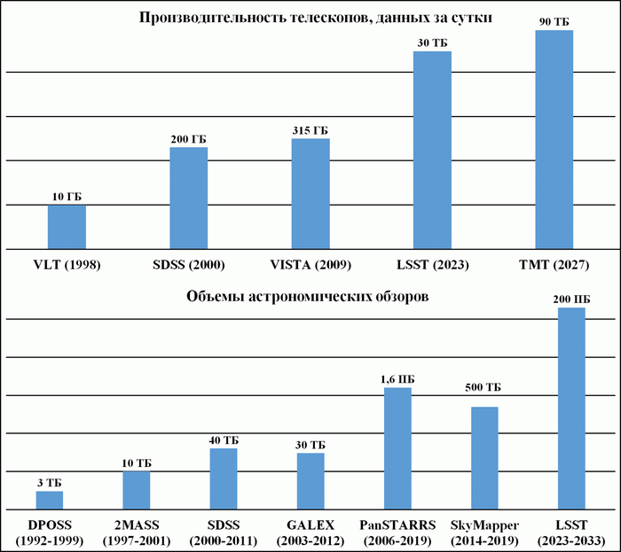«Впервые в рамках последовательного обзора у нас будет закаталогизировано больше астрономических объектов, чем людей на Земле», – говорит Саймон Кругхофф, являющийся членом команды управления данными Обсерватории имени Веры Рубин (известной ранее как LSST). Этот $473-миллионный проект предусматривает создание 8,4-метрового телескопа с обзором в 49 раз больше углового размера Луны и 3,2-гигапиксельной камерой, которая должна будет делать по 2 тыс. 15-секундных снимков за ночь и производить тем самым по 30 ТБ научных данных за сутки.