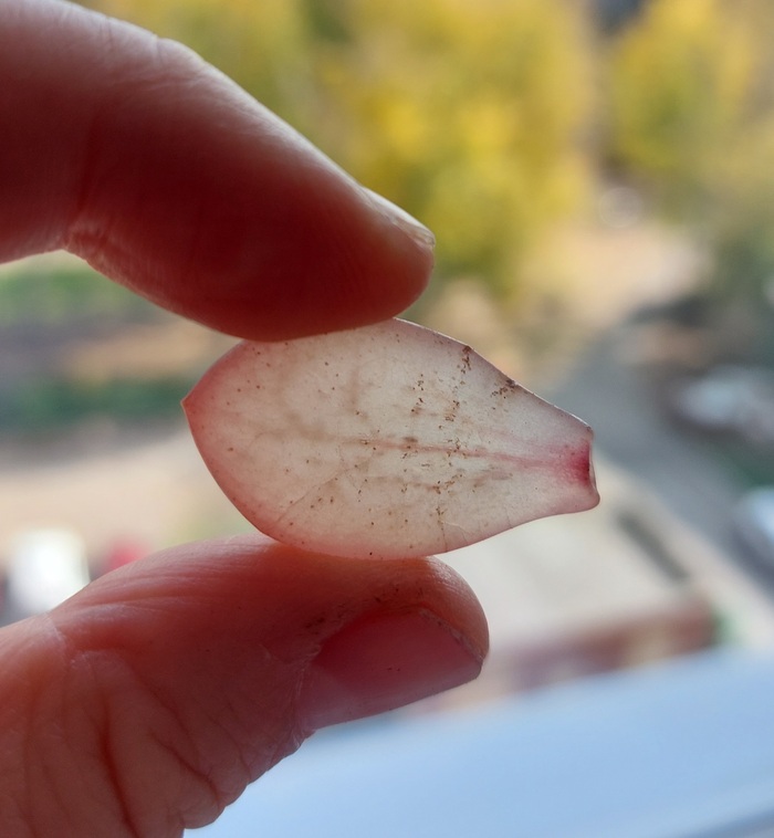 Вот такие, например. Они отвалились со ствола, пораженного гнилью. На самих листиках то место, которым они крепились к стволу, почернело. Деток такой лист не даст, можно смело выбрасывать.