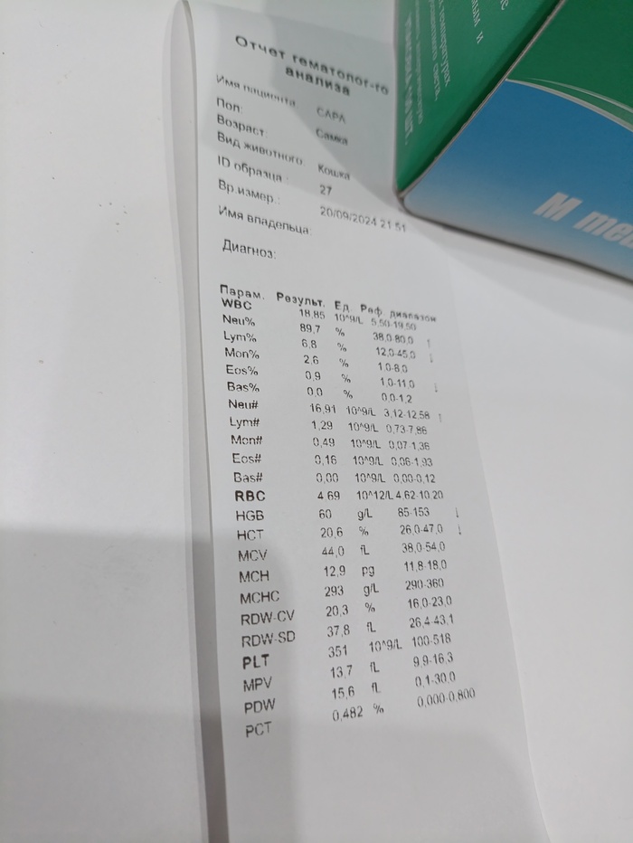 Антибиотик работает, ттт... лейкоциты спустились с 43 до 18 тыщ, это верхняя граница нормы и самое важное, найденное начинающим узистом Натальей где-то под или над почкой воспаление, начало значительно (практически в два раза) уменьшаться в размерах 🫂