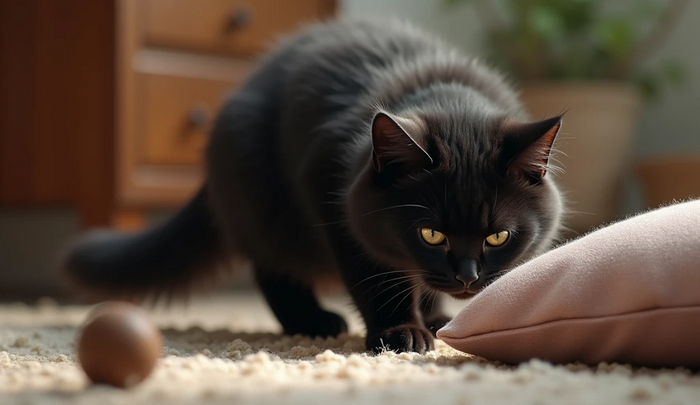 Реакция обиженного питомца: кошка может начать избегать перемещённых вещей, шипеть на них или даже выказывать признаки тревоги. И всё это, конечно, с подспудной ноткой обиды на вас.