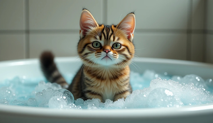 Поведение обиженной кошки после купания: демонстративное умывание, полное игнорирование вас и возможные попытки отстраниться, будто вы — главный злодей её жизни.