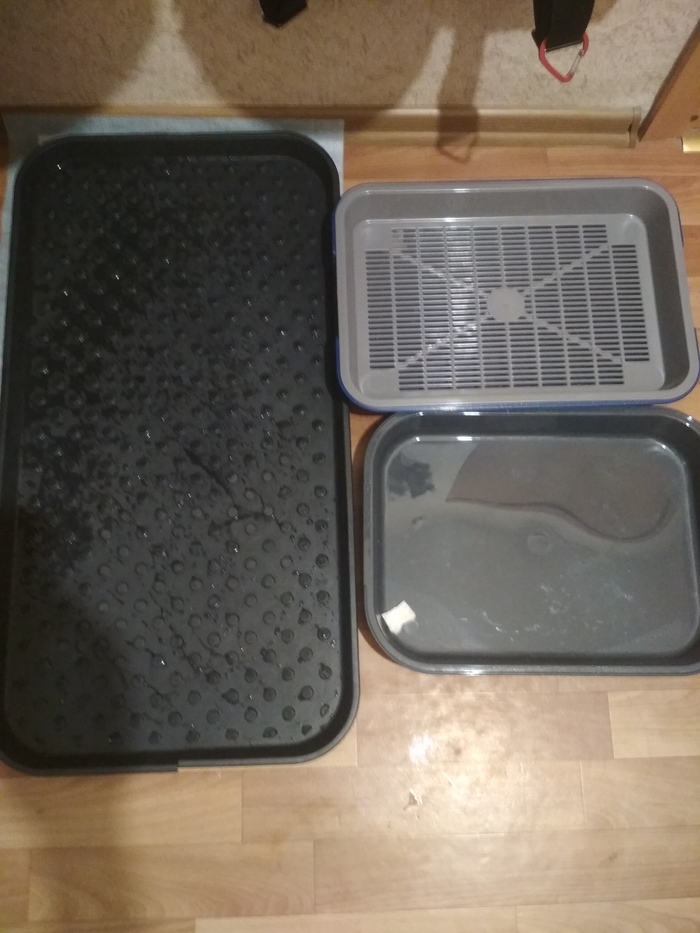 Возраст около двух лет. К лотку приучаем. В угол не ходит, но лоткам предпочитает большой поддон. Иногда в лоток иногда в поддон. Стоят радом два лотка, переноска и поддон.