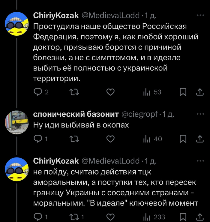 И: Мы их всех тут разъебали, немножко фасады зданий поломали, ну дороги расхерачили - зовите коммунальщиков, пусть обратно всё в зад вертают и приводят ваше тело в исходное положение. А мы управились., у Вас щас 36,6 - живите дальше, до следующего бунда...