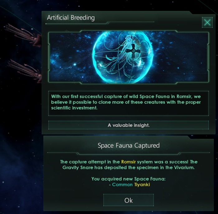 Технология «Gravity Snares» позволяет вашим научным кораблям пытаться ловить дикую космическую фауну.