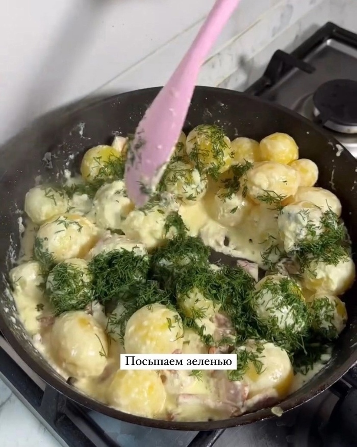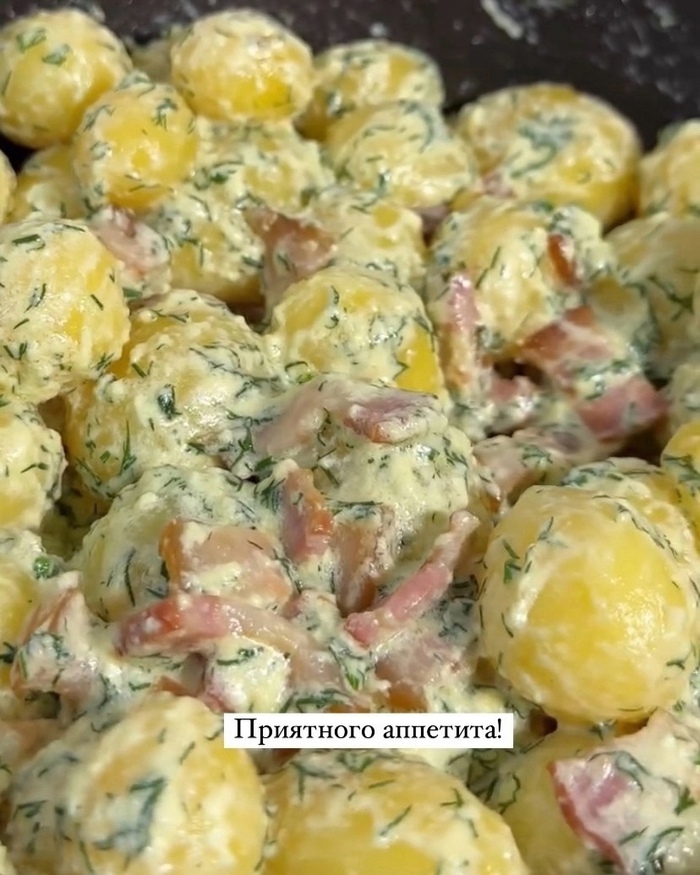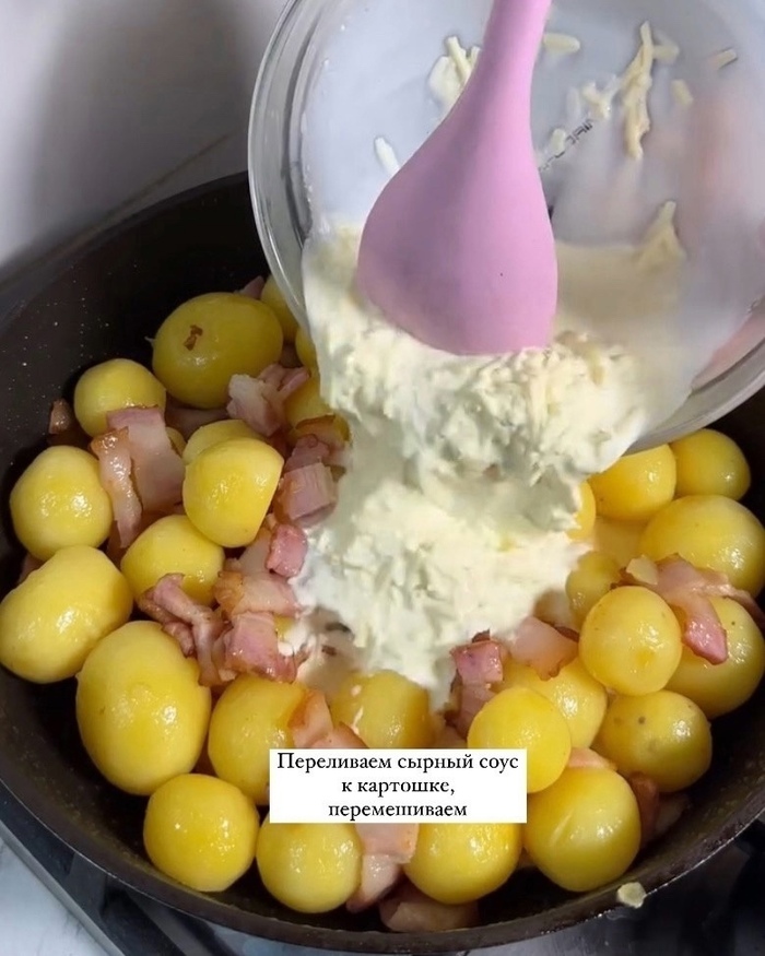 Картофель с беконом в сырном соусе