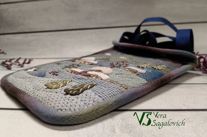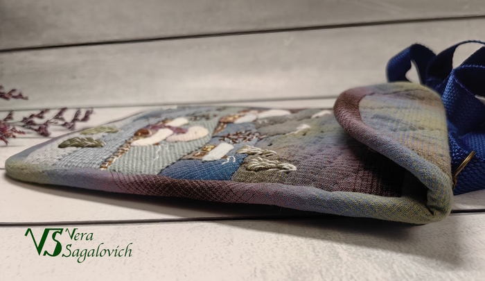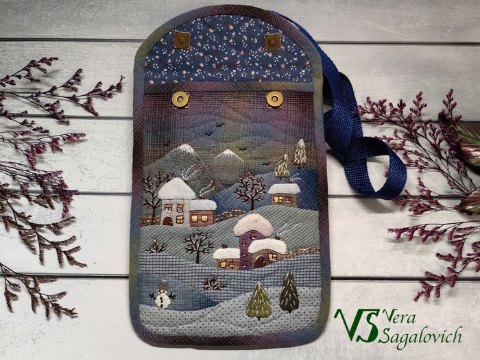 Получилась вот такая небольшая сумочка из фактурного хлопка в технике японский пэчворк.