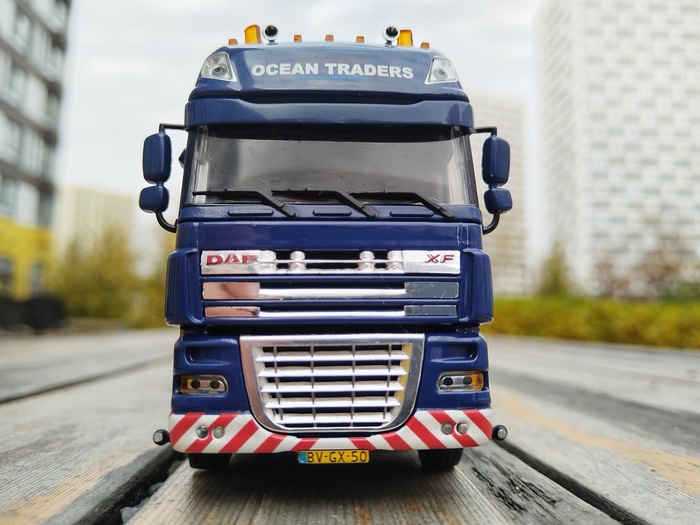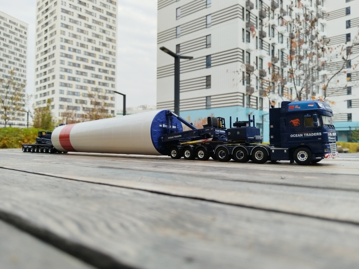 Ливрея OCEAN TRADERS.Масштаб 1:50.DAF XF 105 SSC FTM+Nooteboom MWT+Windkraft Bauteil (компонент башни).Производитель WSI (Нидерланды).Впечатляющая модель!Шикарно вписалась в мех.бригаду по монтажу ВЭС.