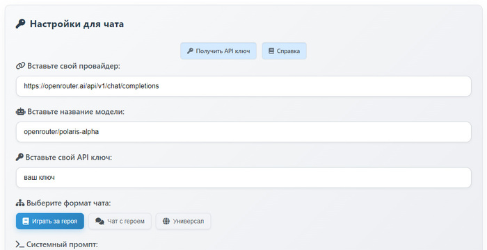 Далее на сайте LiterAI в строке провайдера ставите эту ссылку:
