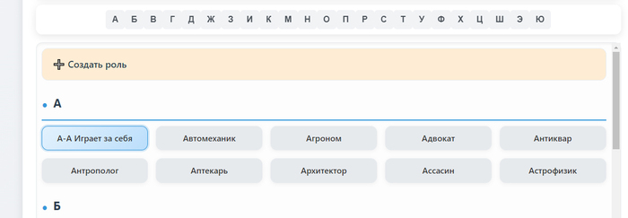 Персонаж добавляется в каталог и автоматически выбирается как активный. Внизу активируется кнопка "Далее". Жмем. В этом окне надо выбрать ему роль. Можно добавить ему любую роль или выбрать - играет за себя.