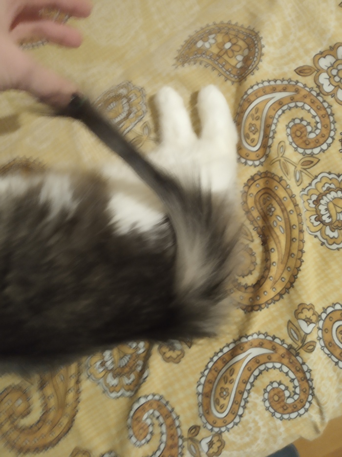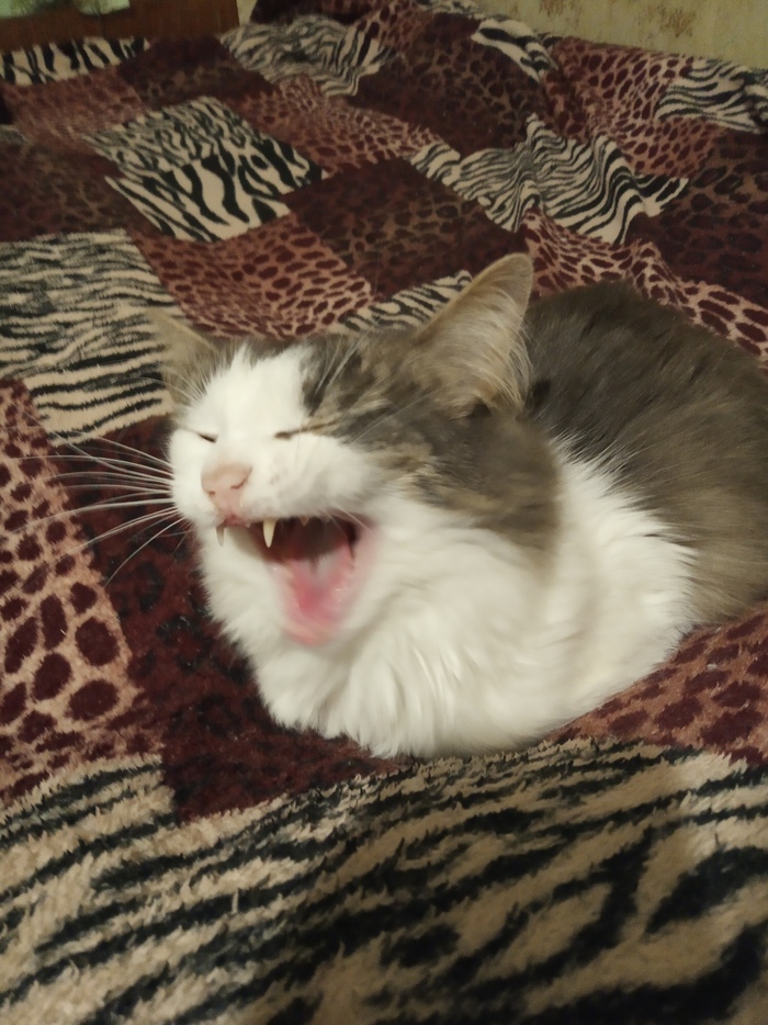 Кстати, про Хабушу, первую кошку. Первую неделю она выла, шипела и норовила дать Шняге люлей. Попутно активно сбрасывала с себя шерсть, так что хвост у Хабуши опять оставляет желать лучшего. Ну и заодно обрыгала мне полквартиры на нервах.