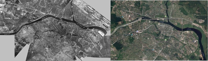 Аэрофотоснимки городов представленные в виде мозаики, сделанные в период 1939-1945 гг с привязкой к API Google Maps.