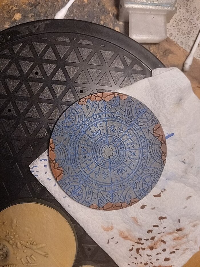 Думал жидко развести краску и пролить все руны, но, чтобы она лучше растекалась, нужно было задуть все глянцевым лаком, но мне уже не терпелось закончить и полюбоваться на финальный результат, поэтому руны просто аккуратно вывел кистью