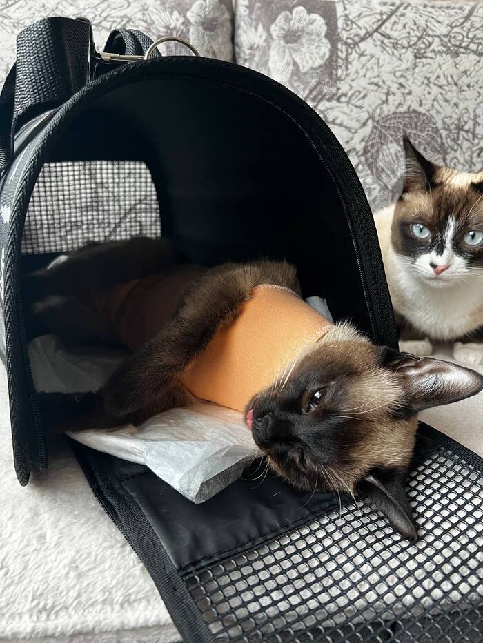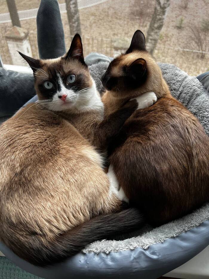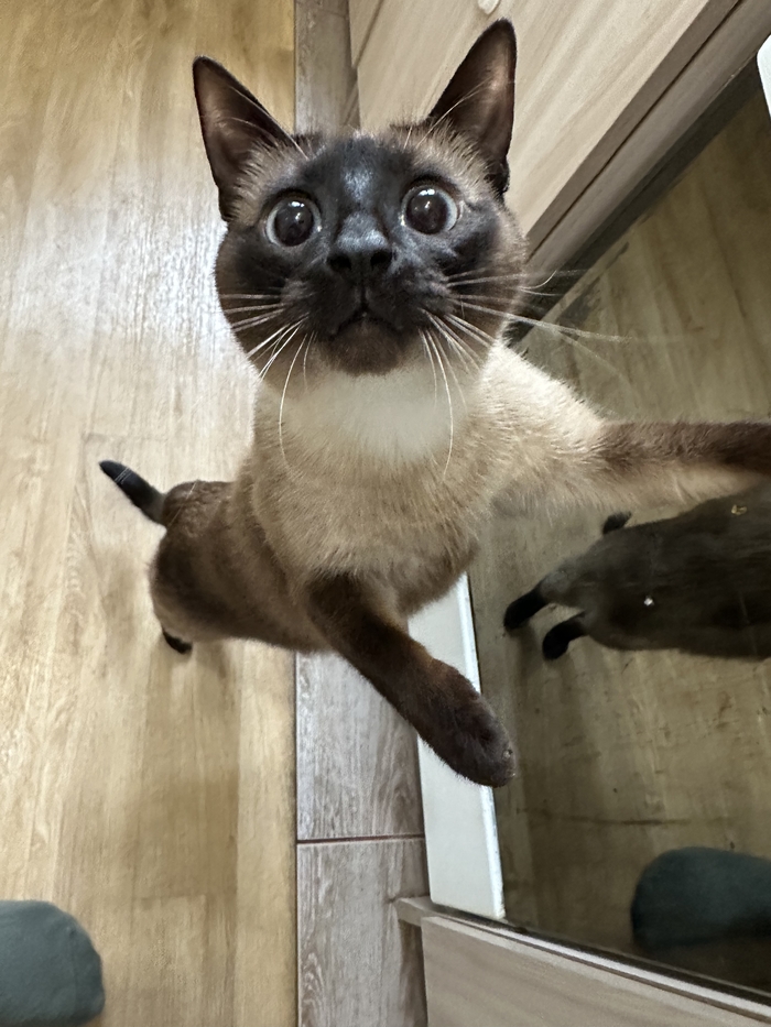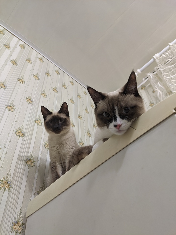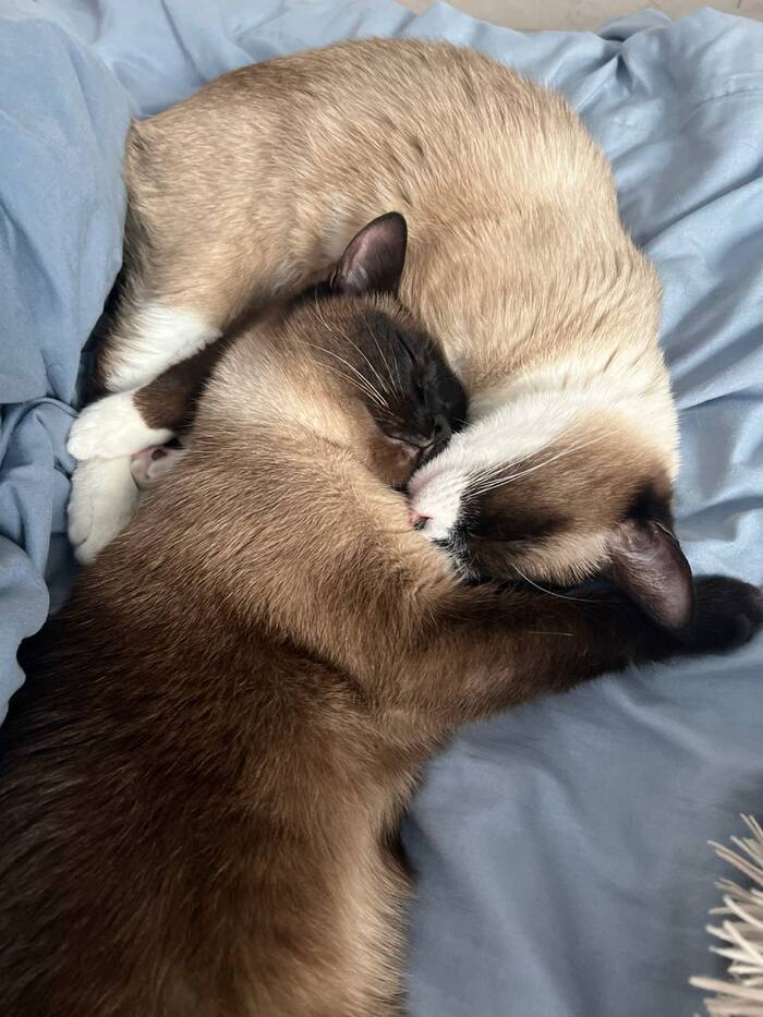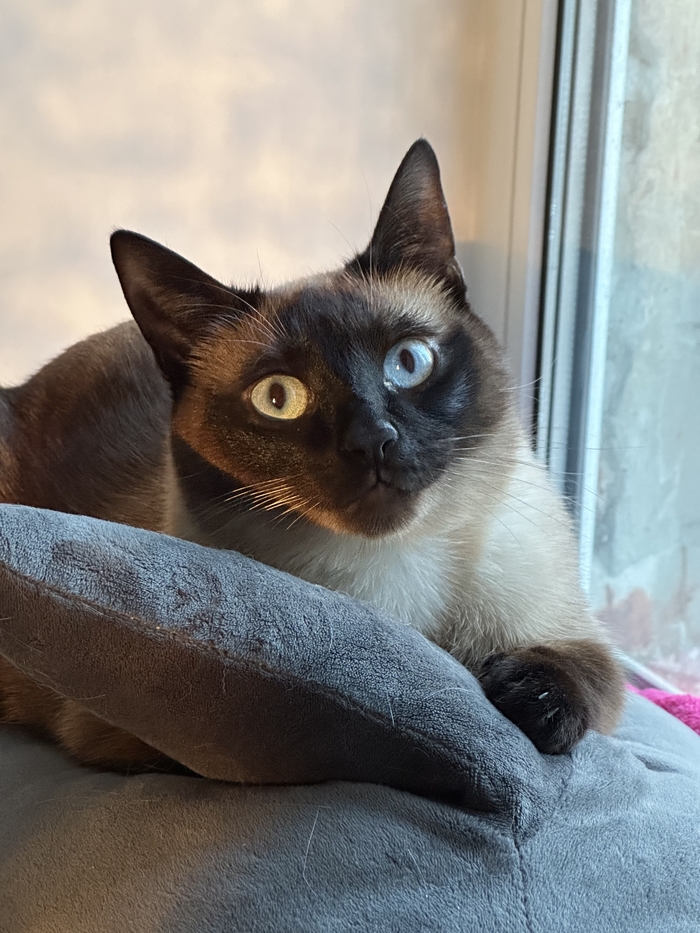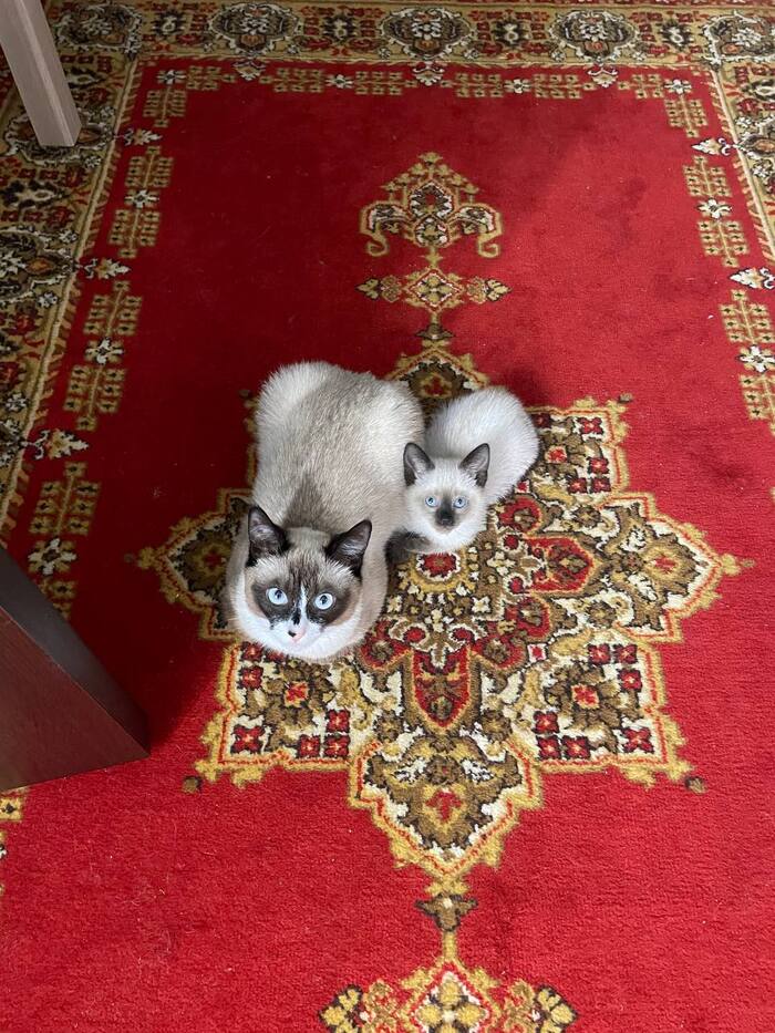 Это уже больше похожая на сиамскую кошку . Мику на тот момент было уже полгода а кошке всего 2,5 месяца и мы переживали как он отреагирует на нового друга в квартире .