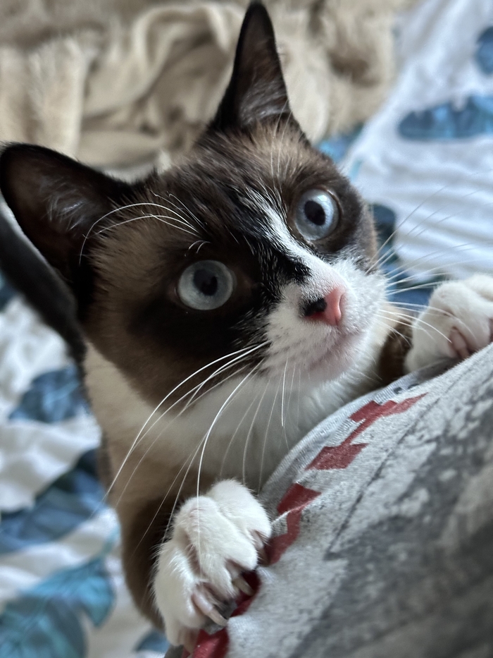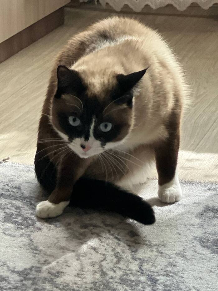 После того как мы поняли что Мик точно не сиамец то решили что будем его приравнивать к породе Сноу Шу, хотя в частном доме у бабушки на Авито врятли конечно мог взяться именно Сноу Шу , но мы особо с этим не заморачиваемся . Итак, чуть позже летом , чтобы кот не скучал, мы поехали ему за подружкой , ездили в соседний город где из 6 котят с кухни выбежала единственная и сразу на ручки, мы подумали что наверное так и должно быть и долго не выбирали .