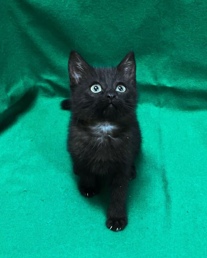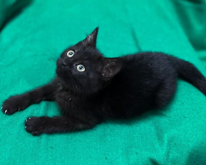 Чёрный малышик Патрис, ему где-то 2-3 месяца.