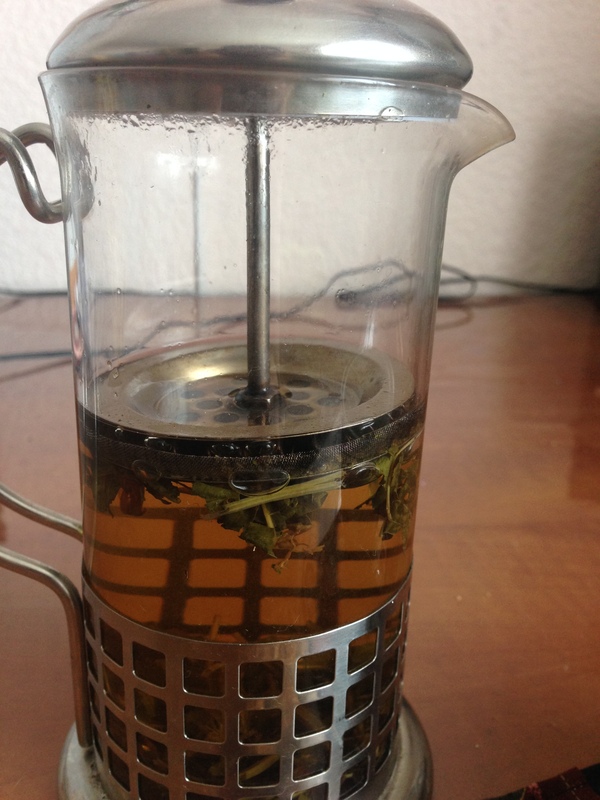 Рецепт приготовления чая довольно-таки прост, главное, запастись временем и терпением. Листья рвут, режут или пропускают через мясорубку, чтобы они дали сок, затем забивают массой банку и оставляют её на полтора-два дня в тёплом месте, чтобы пошёл процесс ферментации. Мне говорили, что надо наполнить трёхлитровую банку этой массой (не утрамбовывать) и какое-то время активно трясти банку, мол, сок лучше пойдёт. Меня хватило ненадолго, до первого сообщения в скайпе, так что для себя отметила необходимость резать листья помельче.