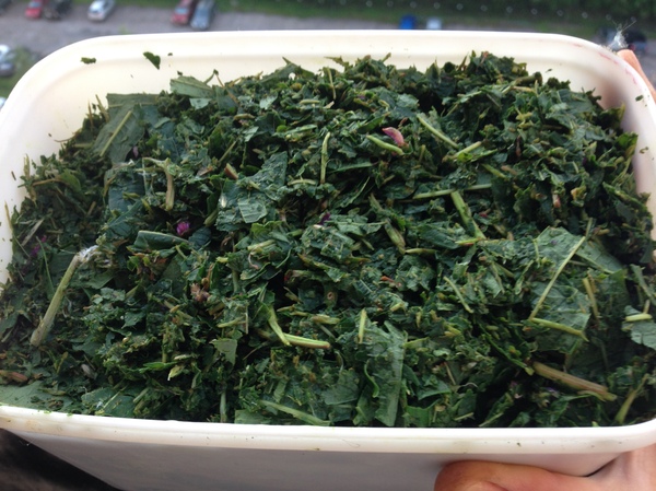 К приготовлению второй партии (партии я делала в разные дни) я подошла более ответственно – заточила нож и методично в течение часа шинковала листья, по-моему, я даже накачала мышцы, о существовании которых раньше не знала.