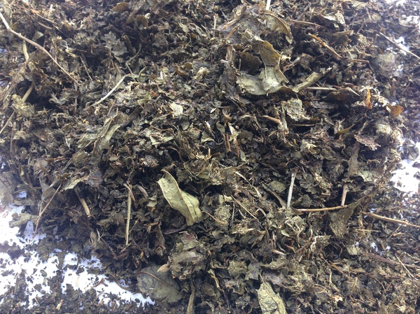 Вот так выглядит масса из листьев, после двух дней ферментации – листья пожухли, приобрели бурый оттенок, да и запах стал специфичным – не гнилым, но схожим с другими чаями, прошедшими процесс ферментации.