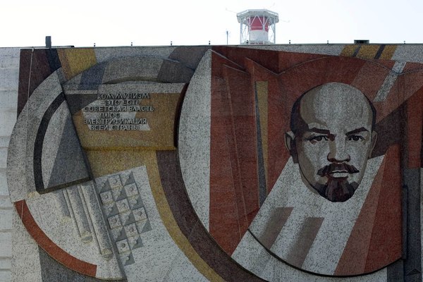 Триптих на фасаде здания у станции метро Каширская, Москва.