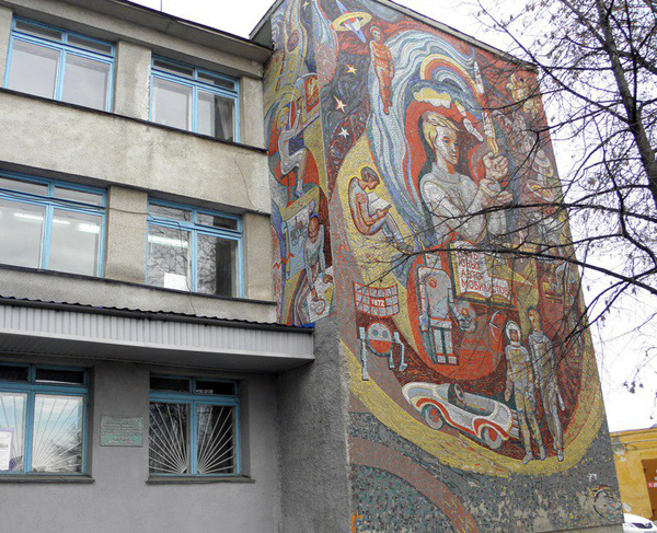 Кибернетический центр НАН Украины. Мозаика на фасаде