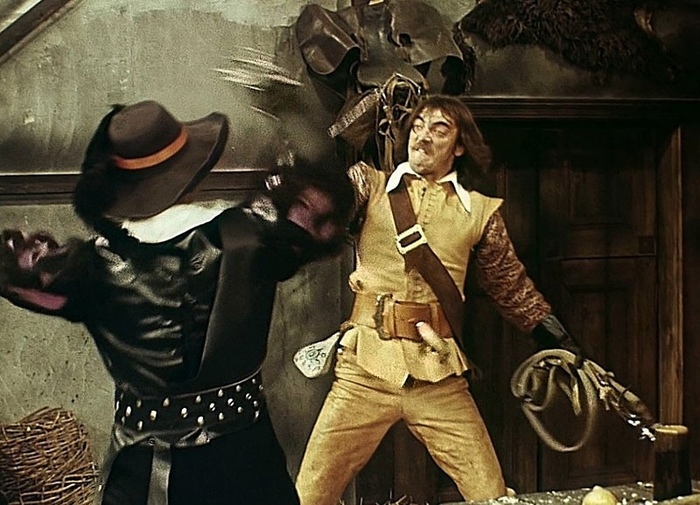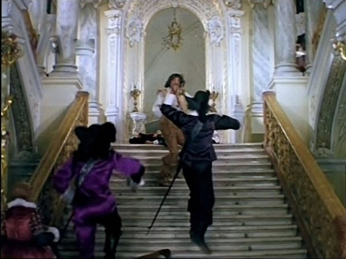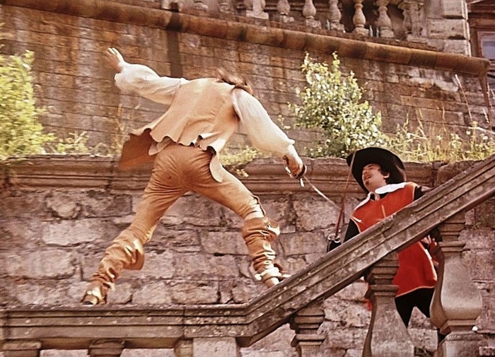опаснейшее фехтование Боярского на наклонных мраморных перилах, и многократные повторения однообразных схваток на лестнице Лувра.