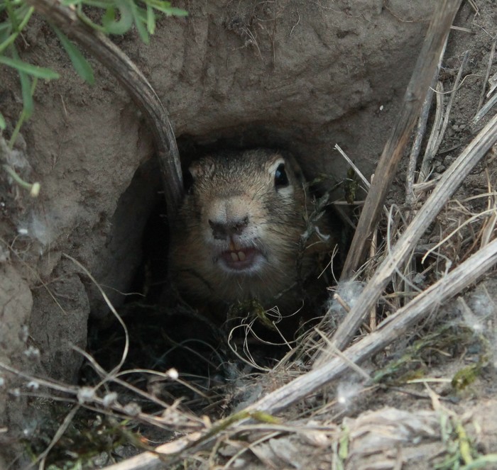 На последок фото сусла в норке. Пищал на нас, ругался.