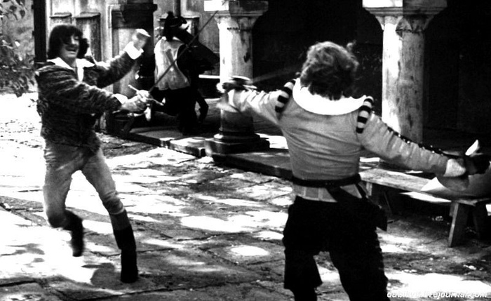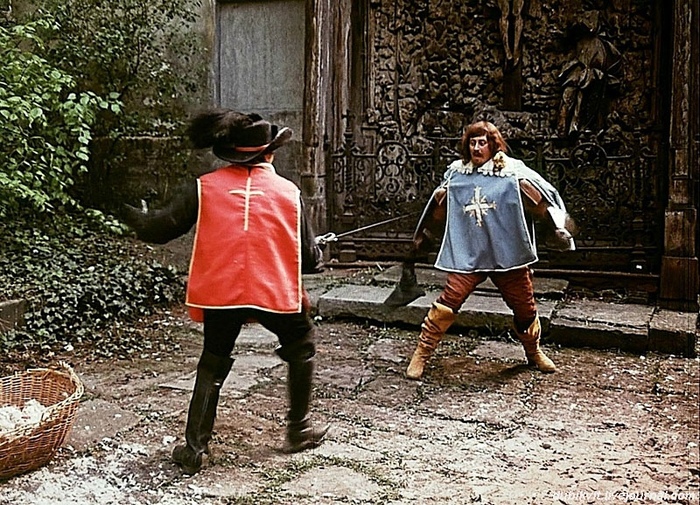 Без тени желчи Саша попросился поучаствовать в драках и Хилл придумал ему выразительную «смерть» в самом конце сцены дуэли в Дешо от удара локтем зоркого Арамиса. Стоп! Снято!