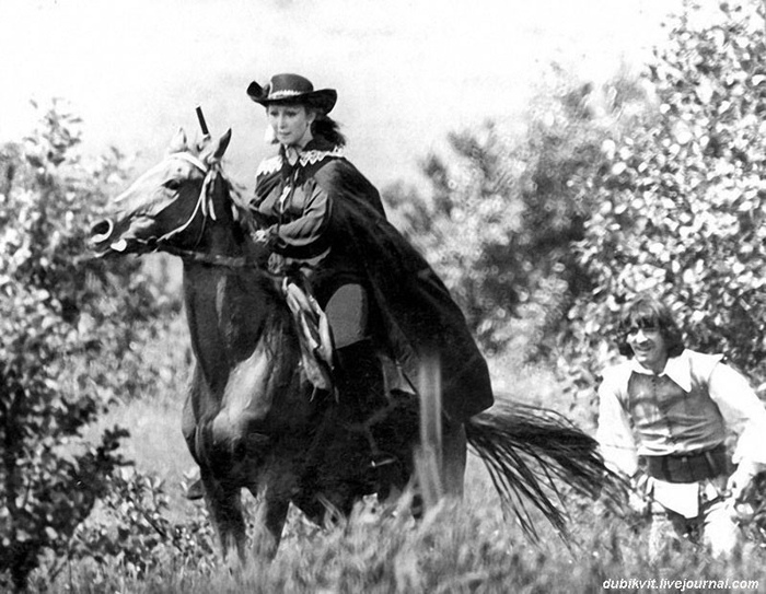 Услышав о приезде, я вызвался встретить её в аэропорту. Я был влюблён во все её роли. Она удивилась такому администратору, но поднимать скандал не стала. Мы гуляли по Львову, говорили о Тарковском, об их замечательном новом фильме «Зеркало», вышедшем недавно на экраны СССР. На репетиции двигалась она прекрасно, в седле сидела легко и свободно. Лариса Джаркас её прекрасно дублировала в сложных проскачках