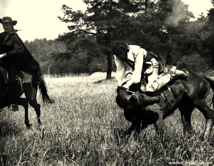 Он поймал на скаку сорванную порывом ветра шляпу и вновь одел её на голову. Веня подпрыгивал над седлом и приземлялся, когда лошадь уходила из под него далеко вперёд. Держался он только за повод, отчего его лошадь несла, закусив удила. Мастер конной упряжи Ходюшин из каких то соображений сделал у седла лошади Вениамина Смехова очень короткое стремя. На таких стременах скачут жокеи на ипподроме. Эти высокие стремена выкидывали Веню из седла на каждом темпе галопа, но заметил я это намного позже, отсматривая материал.