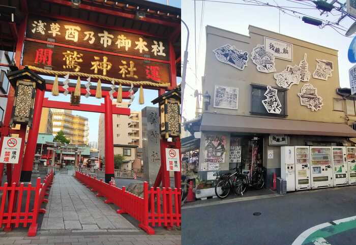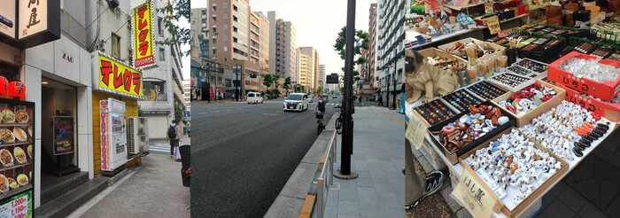 Мы вышли на Ниппори и сразу же свернули не туда, оказавшись на торговой улочке, которая по случайности была в списке для посещения - Янака Гинза. Побродив по ней немного и посмотрев на сувениры, мы отправились пешком к отелю, до которого было 2км пути. За это время удалось немного познакомиться с Асакусой. Чемодан, холодный напиток из автомата и японские улочки, что еще нужно для счастья?
