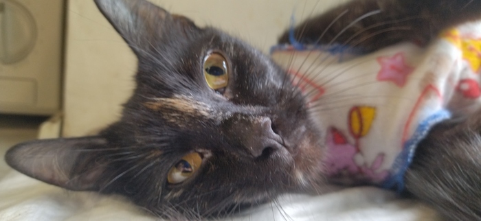 А здесь я ей меняла попону, и она просто не давала это сделать - просто падала на бочок и мурчала🥺