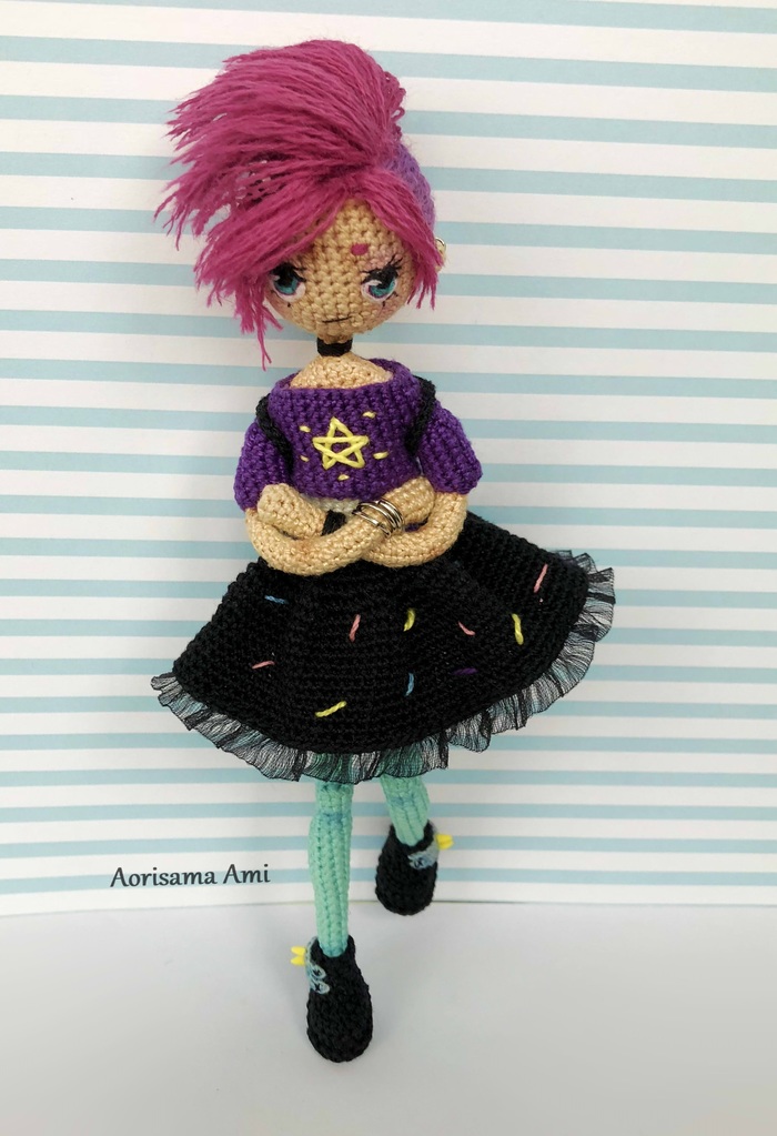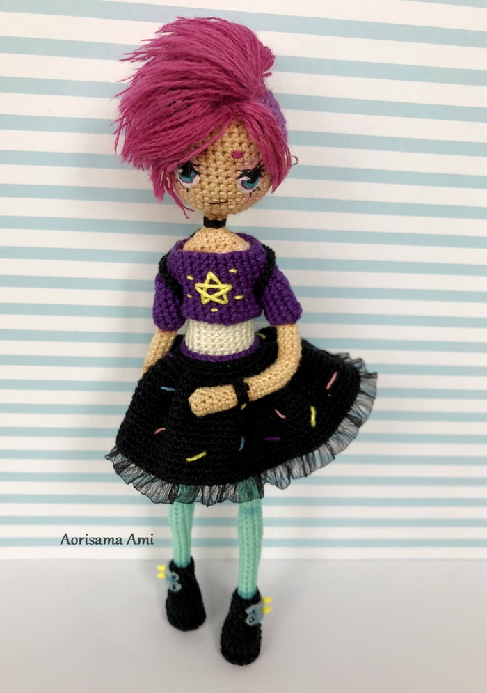 Начинала вязать куколку без какой-либо задумки. Образ пришел уже когда связала тело и юбку.