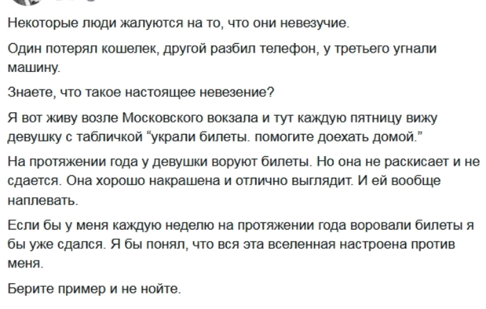 На подходе к магазину до нас доебались 2 взрослых пацана, тогда нам казалось, что им лет 20. Один схватил племянника, а второй повел меня через дорогу. На улице полно людей, мы непонимаем, что происходит, поскольку ещё ни разу в жизни не сталкивались с гоп-стопом, тем более прилюдном. Тут начинаются вопросы типа «Деньги есть? Телефон есть? А если найду!?». Я послушно отвечаю, что денег нет, вот кошелёк, посмотри сам. Заморачиваться с просмотром содержимого моего кошелька гопарь не стал и тупо забрал его. Пакет с фильмом его не заинтересовал и начался шмон по пустым карманам, к счастью этот долбоёб не догадался расстегнуть мою куртку, иначе я бы попрощался и с телефоном. В тот момент больше всего меня поразило, что через дорогу стоят люди и тупо смотрят на происходящее и совершенно никто не хочет помочь 10-летнему пиздюку. Я подумал, может быть, они не понимают, что до меня доебались и начал кричать о помощи. В этот момент мне прилетел удар в скулу, я продолжал кричать, уворачиваясь от ударов, и второй удар пришёлся на фонарный столб. Я услышал, как хрустнули костяшки этого гопника и, воспользовавшись тем, что он потерялся, вырвался из его рук и побежал к племяннику. Второй тип был более гуманным, он просто спросил у племянника деньги и когда получил их, просто отпустил его. Пока меня прессовали, племянник побежал по ближайшим магазинам просить о помощи. И конечно снова никто не вышел помочь.