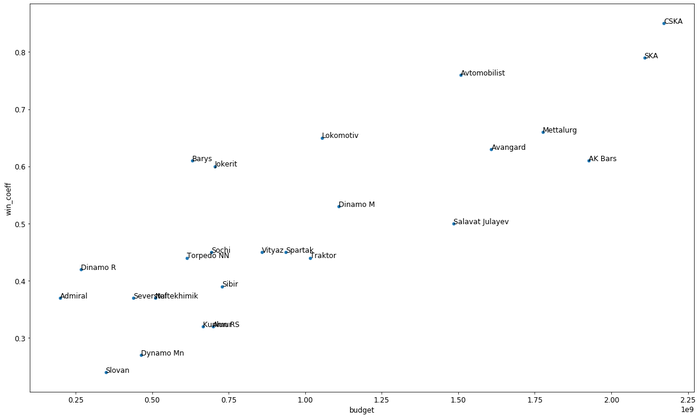 Всем привет! Давно читаю пикабу, решил, что пришло время самому что-то написать. Я финансовый аналитик, в свободное от работы время изучаю статистику и программирование. Думаю, что многие слышали про такой концепт в бейсболе - moneyball. Он подразумевает, что клубы c наибольшим финансированием, обладают более высокими шансами на успех в сезоне. Решил проверить работает ли что-то такое в КХЛ. Дальше будет много буков и графиков. Заранее предупреждаю, что данная статья не является гайдом к ставкам или чему-то подобному. Я просто изучил статистику и хочу поделиться своими выводами с сообществом. За все ошибки в тексте готов понести наказание заранее приношу извинения. Погнали!