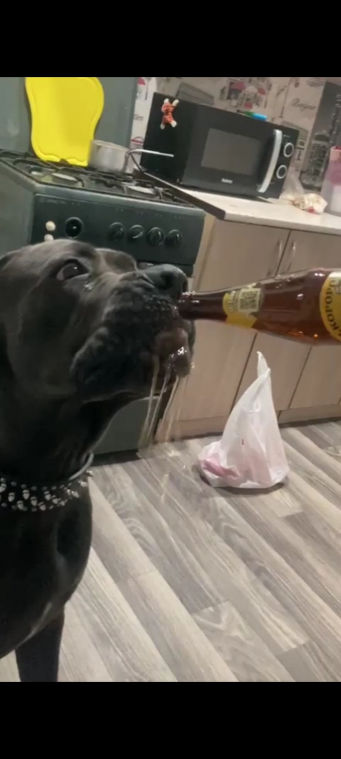 Любит пивка выпить, расмешит если грустно, есть небольшой минус очень слюнявый, когда дома мотает башкой то слюни прилетают в лицо, на стены,на зеркала, нужно этот момент ловить и успеть укрыться 😂