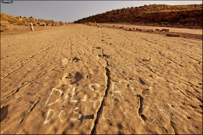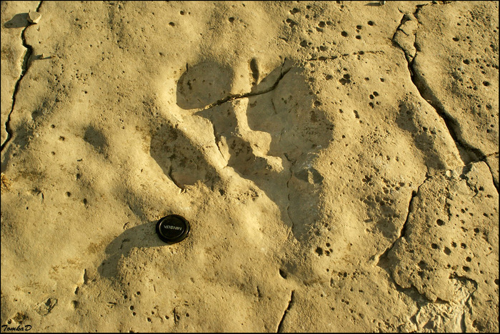 А вот следы вандалов на следах динозавров.