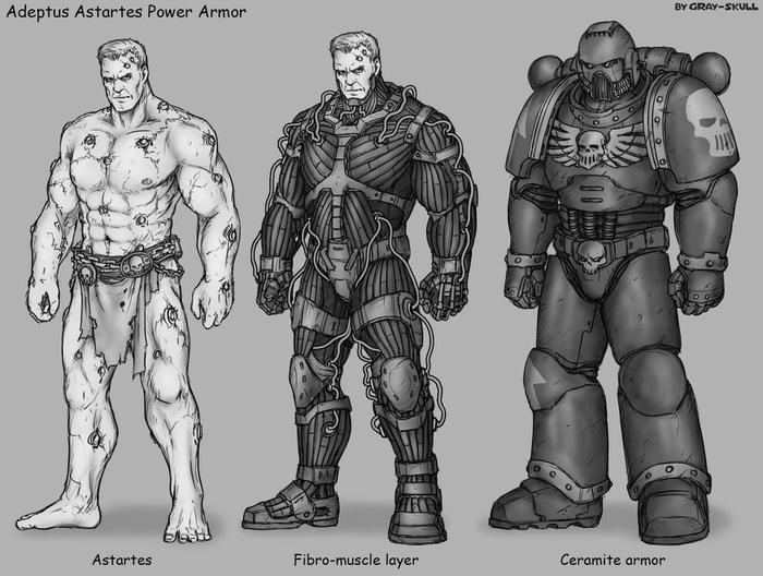 Несмотря на то, что помимо подразделений Адептус Астартес, силовая броня также используется членами Адептус Кустодес (личная гвардия Императора), Сестрами Битвы и некоторыми Инквизиторами - которых мы тоже обязательно упомянем - и космодесантом Хаоса (а им, в свою очередь, места в нашей хронике нет), описывать я буду броню Космического Десанта, так как именно модель Mark I положила начало развитию этому потрясающему комплекту защиты.