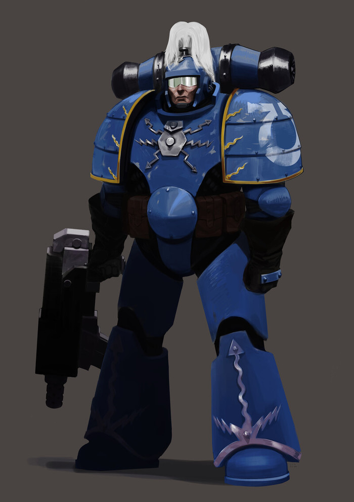 Боец ордена Ультрамаринов в броне модели Mark IV