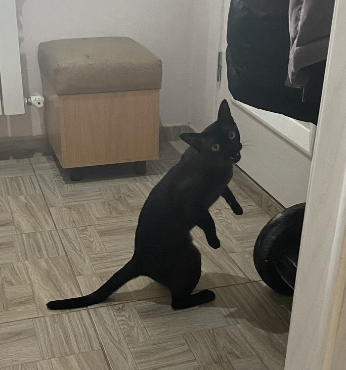Она в этот момент уже собиралась садиться, стояла ко мне спиной и не видела, что стула больше нет.