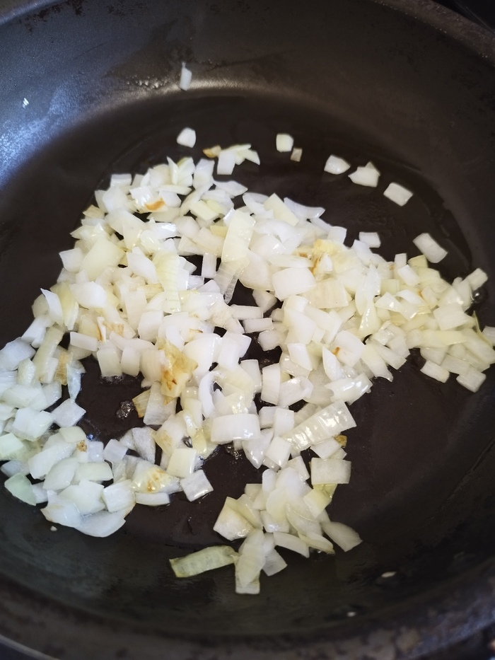 3. Одну луковицу мелко режем и обжариваем на небольшом количестве растительного масла.