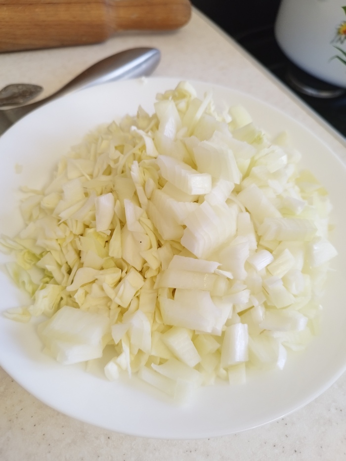 5. Мелко порезанный лук обжариваем с капустой на капле масла.