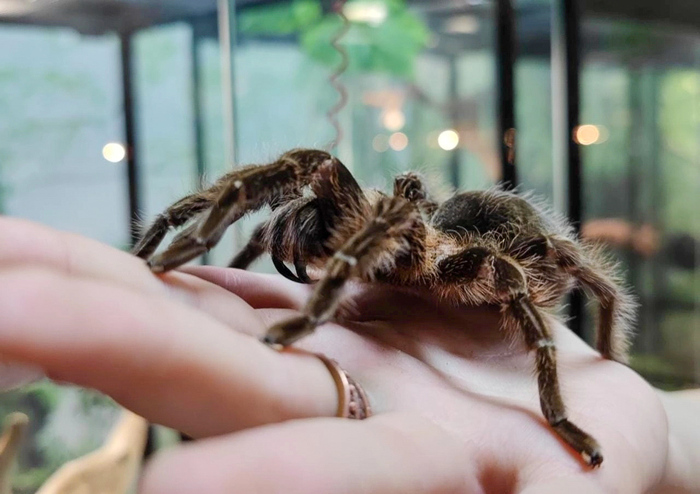 Ладно, не будем вас сильно пугать, на самом деле пауки чаще всего убегают, но конечно если начать тыкать их пальцем, то многие покажут свою защитную стойку, в которой они показывают своих хелицеры. Раскрою секрет, в этой позе они не видят объекты перед собой, а ориентируются на вибрацию. А ещё птицеед знает, что получить укол такими хелицерами как у него уже болезненно, поэтому чаще всего первые уколы "сухие" то есть без яда, но это не гарантия, поэтому их лучше не трогать.