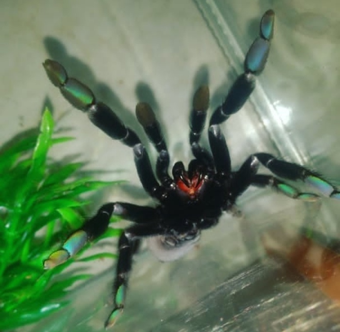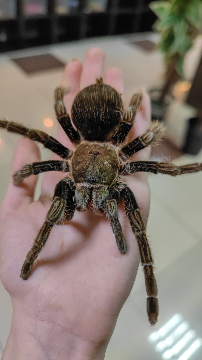 Самое интересное, что эта красотка не агрессивна, просто часто выпячивает хелицеры, а на фото вид сверху, как будто все в норме.