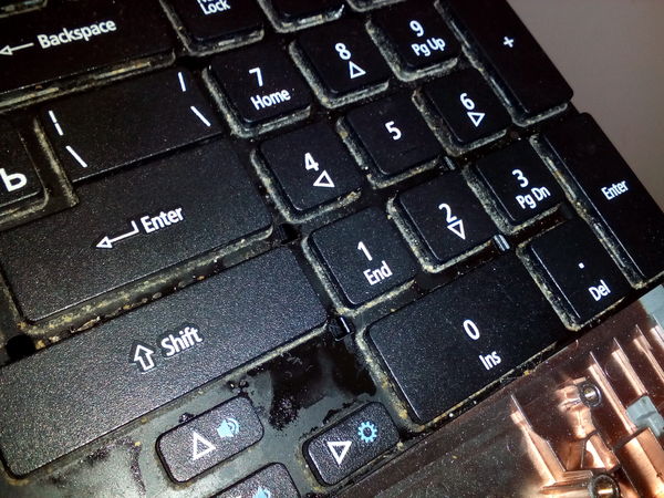 клава крепится к рамке винтами. более-менее человечно, ибо ноуты чуть посвежее уже имеют приклепанные пластиком бутерброды... меньше мороки в этот раз. раскидываем, чистим, собираем обратно уже с новой клавой. Старая - как самобранка, в голодные годы можно супа наварить.