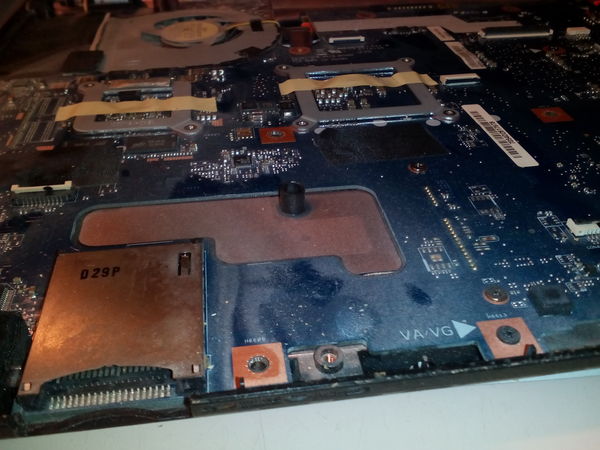 попутно выглядываем 8 нестабильных секторов, о которых будет доложено. а пока ноут стоит на тесте, ковыряем китайский регик. история умалчивает о том, что с ним произошло, принесли в пакете. в ходе диагностики выявлен умерший аккуум и два стабилизатора на 3.3 вольт (один с дырой, второй пробит).